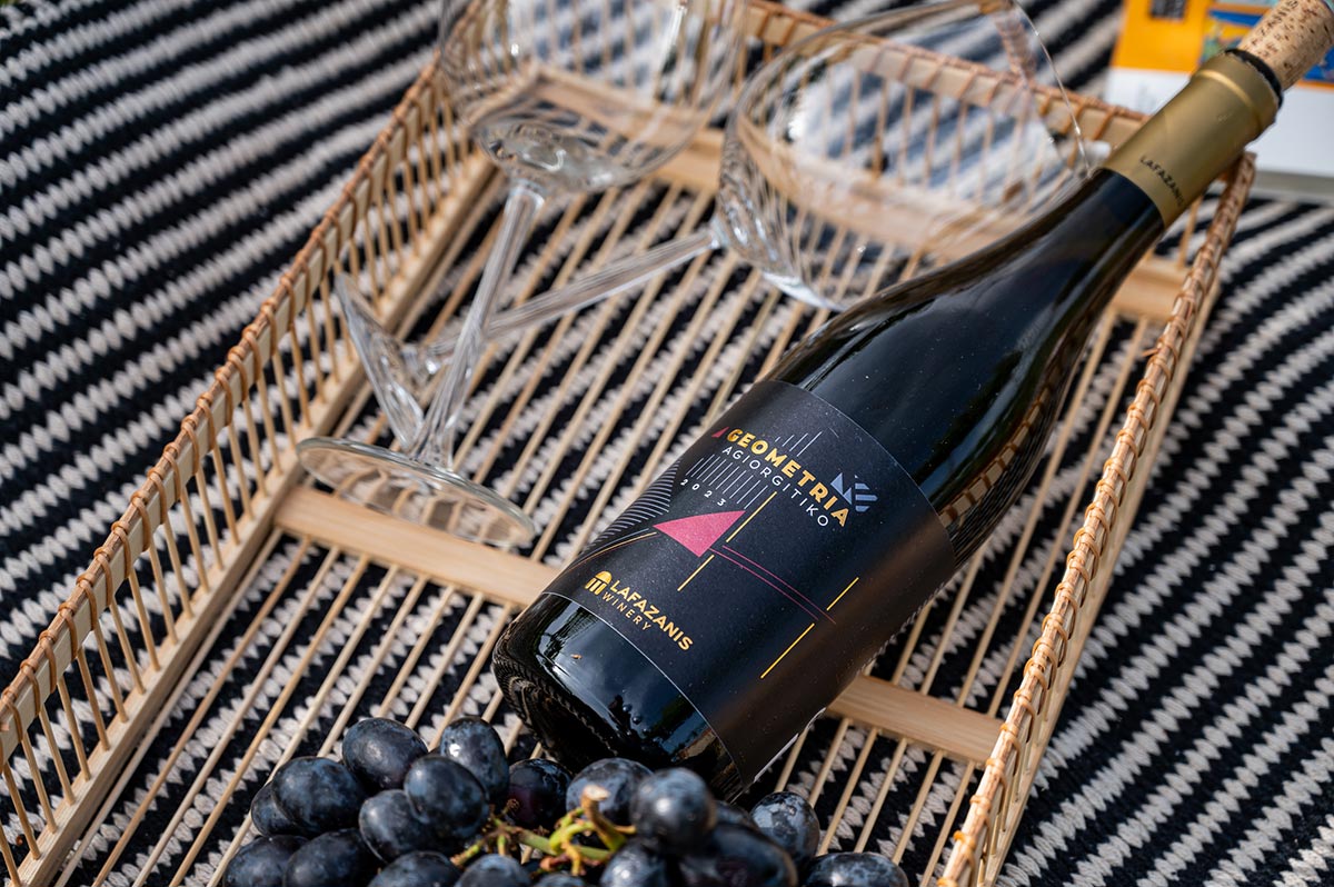 Shaped by the site’s measurements, the balance of nature, and careful observation of every detail, GEOMETRIA Agiorgitiko comes to life. The vineyard plots that compose it are carefully selected from the wider P.D.O. Nemea zone, at altitudes of 250–400 meters, on clay and limestone soils. This is a fresh expression of Nemea, meaning it is unoaked.