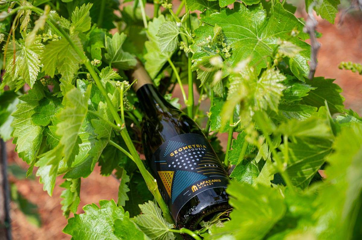 GEOMETRIA Malagousia is sourced from selected vineyards in Nemea, at altitudes ranging from 300 to 400 meters, with clay and limestone soils. The vineyards are cultivated at a density of 400 vines per stremma, with an average yield of 1,100 kg per stremma.