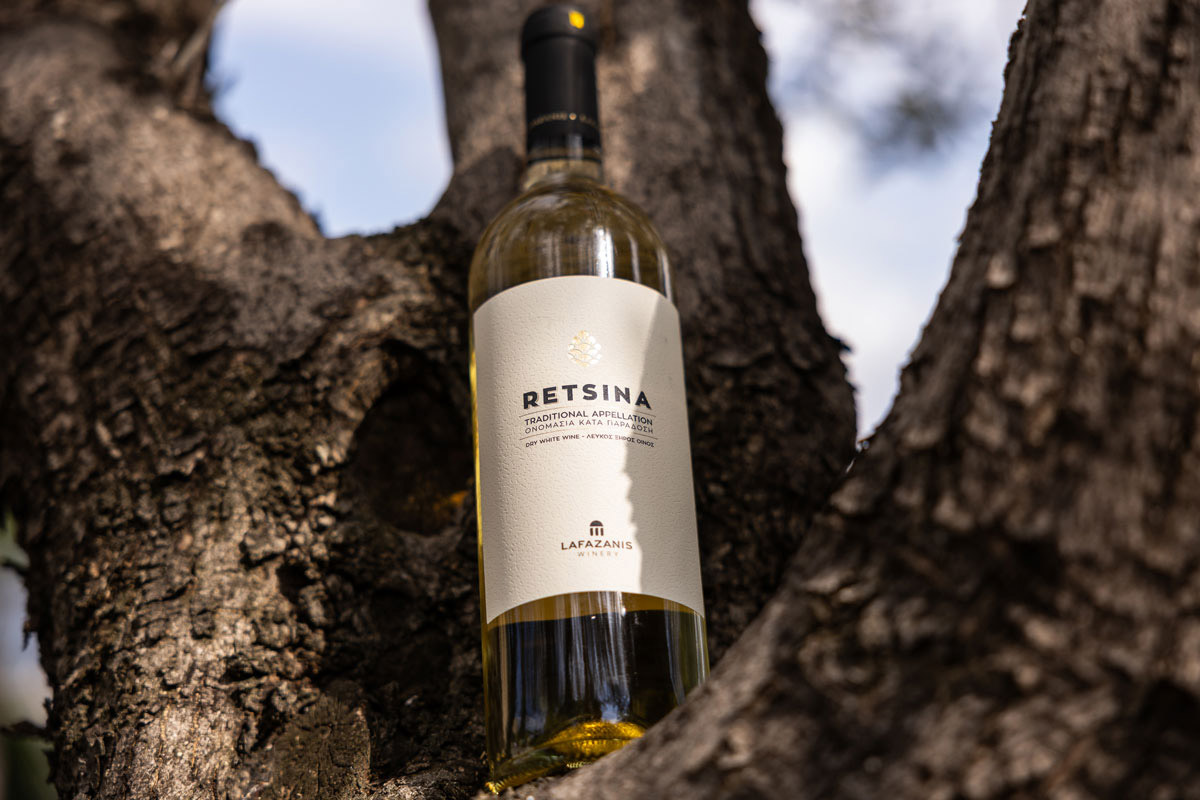 In Lafazanis Retsina, a classic white vinification is followed for the two grape varieties, Roditis and Savvatiano, with the addition of natural pine resin during alcoholic fermentation. The use of resin is subtle, highlighting the traditional character of the wine without overpowering the freshness and clarity of its aromas.